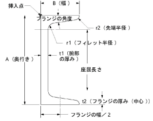 溝形鋼の腕部の厚みが表示されます。サイズの変更を選択している場合はカスタム値を入力できます。 |