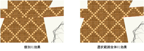 個別に効果を選択すると、選択した図形ごとにイメージが適用されます。選択範囲全体に効果を選択すると、選択した複数の図形全体で1つのイメージが適用されます。