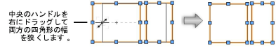 複数のシンボルを同時に伸縮することはできません。 複数の図形の縦横比を変えずに伸縮するには、Shiftキーを押しながらコーナーハンドルをドラッグします。 |