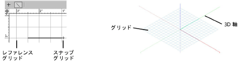 描画時と編集時にオブジェクトを視覚的に整列するのに使う目に見えるグリッド。 |