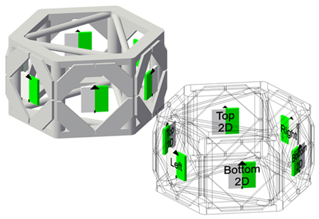 手動でマグネットを再配置します。トラスの断面形状の対辺の中間点をつなぐレイアウトラインを描画すると便利です。線が交差する中心点に、マグネットを配置します。ポイント間複製ツールを使用して、マグネットを中心点まで移動します。必要に応じて、回転ツールを使用して、マグネットを正しい吊り角度まで回転させます。