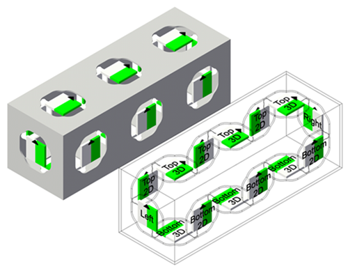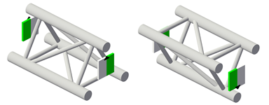 トラスの断面形状に沿って複数の連結位置を持つミッドスパンの連結トラスでは、マグネットの中心点が連結位置の中心と揃っていなければなりません。ミッドスパンの連結トラスを参照してください。