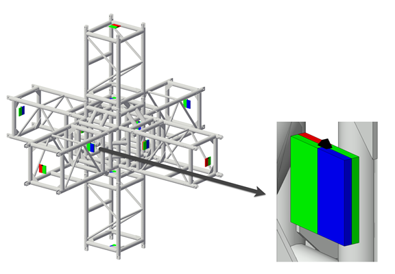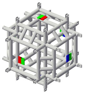 Vectorworksライブラリのトラスシンボルでは、マグネットを使用してトラス連結オプションが定義されます。マグネットは、トラスシンボルの3Dコンポーネント内の各接続ポイントに配置されます。マグネットは、リギング-トラス-マグネットクラスに配置されますが、これはデフォルトでは非表示になっています。