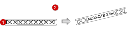 トラスを別のトラスまたはトラスラインに追加すると、たとえ別の配置モードや吊り角度を指定していたとしても、トラスは自動的に既存のシステムと同じヒンジ角度で挿入されます。追加したトラスは、選択したリソースに応じて直線、曲線(または円形)、ヒンジ、またはコーナー要素になります。