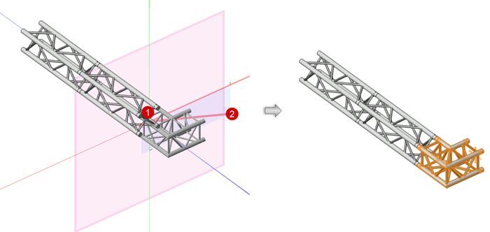 カスタムの吊り角度でのトラスの連結も、現在のビューに依存します。最良の結果を得るには、トラスの向きに垂直なビューを設定して、垂直投影を使用します。