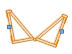 ヒンジトラスも同様に配置されますが、ヒンジトラスはシングル配置モードでしか配置できません。配置した後にヒンジを選択し、ハンドルを使用して(またはオブジェクト情報パレットでヒンジ角度を編集して)ヒンジ角度を調整します。ヒンジの角度は、トラスプロパティダイアログボックスで指定した最小角度と最大角度の間で設定する必要があります。それ以外の場合は、最も近い有効な角度が使用されます。