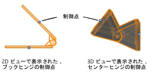 ヒンジ部品の間の角度を設定します。 ヒンジトラス上の制御点を移動して、ヒンジの角度を手動で調整できます。