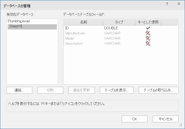 キーを選択する機能はデータベースドライバーによって異なります。必要に応じてテーブルを表示をクリックしてテーブルの内容を表示すると、適切なキーを選択しやすくなります。