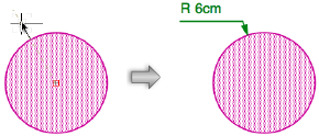 半径寸法(外側)モードでは、円または円弧の半径寸法を計測して、図形の外側に寸法を記入します。