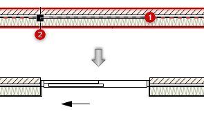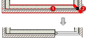 2回目にクリックした時の壁の中心線を基準にしたカーソルの位置によって、オブジェクトが壁のどちら側に開くかが決まります。