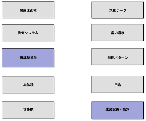 エネルギー解析パラメータをクリックすると、そのパラメータに影響を及ぼす他のパラメータが表示されます(オンラインヘルプのみ)。