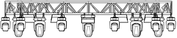 円形トラスシステムの概略図の2Dビューでは、重なり合うトラスは、実際に見えるような形で互いの上に配置されます。