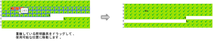 診断図を使用し、照明器具を別の場所にドラッグして競合を解決します。