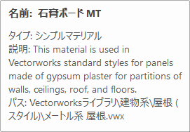 リソースマネージャまたはリソースセレクタで、カーソルをマテリアルの上に移動すると、名前、説明、シンプルまたは複合タイプが表示されます。説明には通常、マテリアルの一般的な用途、構成、該当する場合はサイズ情報などの情報が含まれます。