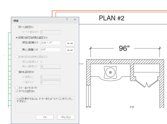 伸縮コマンドを使用すると、取り込んだPDFページオブジェクトを現在の図面の縮尺に合わせてインタラクティブに伸縮できます。クロップされたPDFオブジェクトも伸縮できます。
