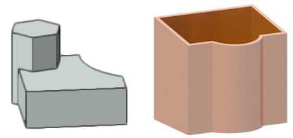 をクリックします。シェルの設定ダイアログボックスで、図形の面の内側にシェルを作成するよう選択し、シェルの厚みを13mm(0.5インチ)と入力します。操作対象として選択できることが強調表示されたソリッド図形の上部に、カーソルを重ねます。面をクリックしてEnterキーを押すか、ツールバーのチェックマークボタンをクリックします。
