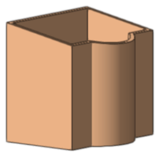 をクリックして、プッシュまたはプルできる状態を示すよう強調表示された曲線の上にカーソルを置きます。形状をクリックしてカーソルを上方向に移動すると、押し出しのプレビューが表示されます。再度クリックして、調理器具ホルダーの高さを約215mm(8.5インチ)に設定します。