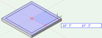 箱の底面にカーソルを重ねます。紫の強調表示によってオートマティックワーキングプレーンが示され、次に描画するオブジェクトはその面上に配置されます。押し出しの面の中心をクリックし、コーナーに向かってドラッグします。クリックして6"の正方形を作成します。
