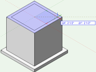 箱の押し出しの面の中心をクリックし、コーナーに向かってドラッグします。クリックして5"の正方形を作成します。