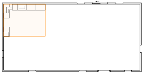 まだ開いていなければ、リソースマネージャを開きます(Ctrl + R(Windows)またはCommand + R(Mac))。リソースマネージャで、「レイアウト」をキーワード検索します。インテリア キッチン L型のレイアウトシンボルを選択し、家屋の隅に配置します。2Dビューに切り替えたのは、邪魔になる窓がある場合に動かしやすいためです。窓を移動する必要がある場合は、その窓を選択し、壁内の新しい位置にドラッグします。