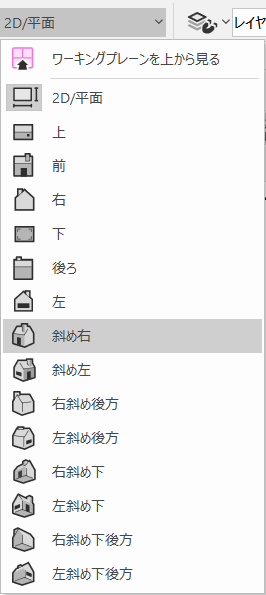 表示バーの現在のビュー/標準ビューリストから選択するか、テンキーの0を押すか、あるいはオンスクリーンビューコントロールのキューブを使用して、2D/平面ビューに切り替えます。