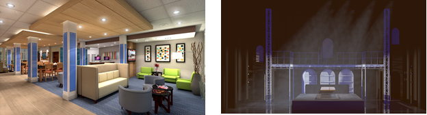 レンダリングは3D図形に立体感をもたらすため、レンダリングを作成するには、2D平面や一連のプレイナー図形だけでなく、3Dモデルを用意する必要があります。Vectorworksは、2Dと3Dの両方のコンポーネントが組み込まれた多くのプラグインオブジェクトやシンボルを備えているため、2D/平面ビューと3Dビューのどちらでも同じようにうまく動作します。建物オブジェクト、植栽、エンタテインメントデザインオブジェクト、家具など、これらのオブジェクトの多くは、Vectorworks Design Suite製品が必要です。カスタムの3D図形を作成することもできます。