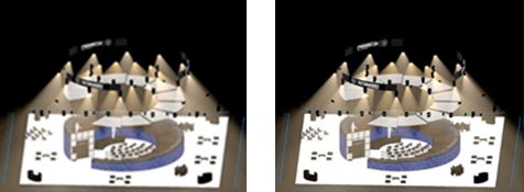 このレンダリングモードの使用中に、Showcaseで再生するレコーディングを選択します。正しく再生するには、DMXファイルが現在のファイルの照明器具に対応している必要があります。 ファイルにまだレコーディングが存在しない場合は、レンダリング(バックグラウンド)モードでレンダリングスタイルを使用するビューポートを作成する時に、DMXスナップショットを作成するよう求められます。 |