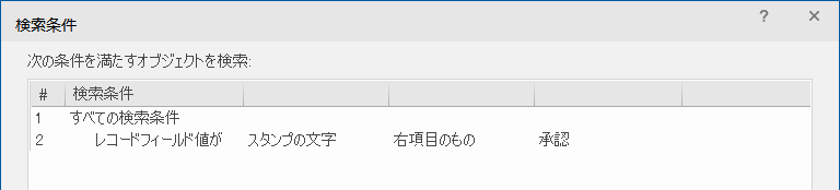表題欄検索条件マネージャダイアログボックスが開き、現在の検索条件の名前と条件式が表示されます。