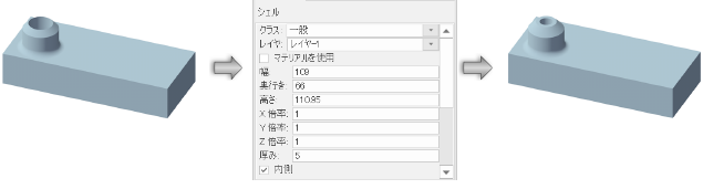 この例のステップ2で作成したシェルの厚みを編集するには、次のいずれかの操作を行います: