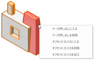 面を右クリックすると、フィーチャ固有のコンテキストメニューが表示されます。必要なコマンドを選択します。