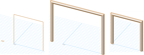 パス押し出しコマンドを使用すると、所定のパスに沿って断面形を押し出すことができます。断面形を、2D図形、3D多角形、NURBS曲線にできます。断面形を、非平面、自己交差、または2D断面形と3D断面形の混合にすることはできません。NURBS曲線ではないパスは、この操作中に自動的にNURBS曲線に変換されます。