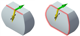 モードによっては、選択した辺(左)または関連するすべての辺(右)を隣接する面にオフセットできます。
