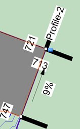 造成図形の始端と終端の高さを入力します。あるいは、いずれかの高さを入力して勾配値を入力すると、もう一方の高さが自動的に計算されます。 |