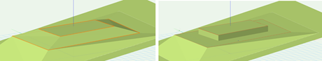 内側の造成図形に対して垂直面の選択を解除した場合(左側)と選択した場合(右側) |