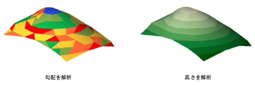 勾配解析を表示するには、傾斜の色分けによる表示スタイルを選択します。高さ解析を表示するには、高さの色分けによる表示スタイルを選択します。