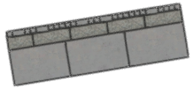 この境界枠設定の縁石は3列です。最上列は2つの構成要素からなる複合列となっています。 |