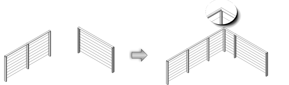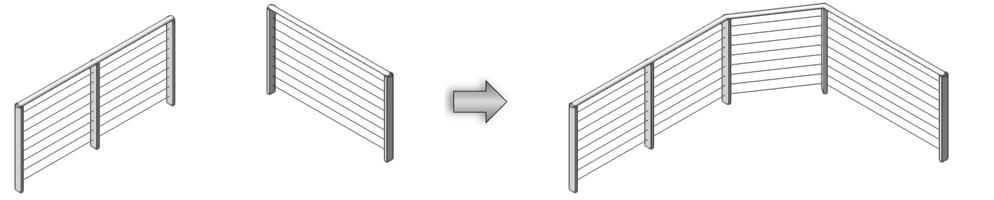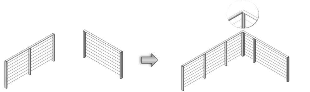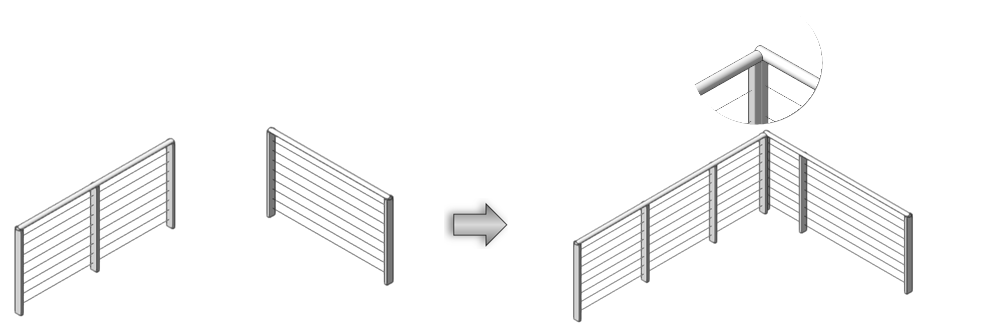 必要に応じて新しい手摺セグメントを作成して、2つのオブジェクトを結合します。