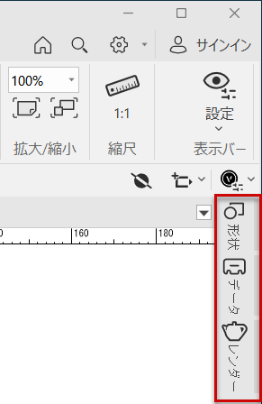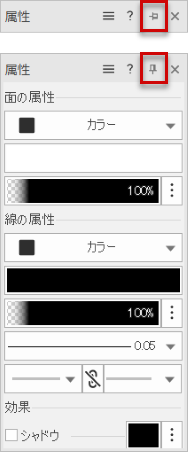 をクリックして、機能を有効にします。パレットをドッキングしている場合、タイトルバーまたはタブ名がアプリケーションウインドウの端に、縦に表示されます。