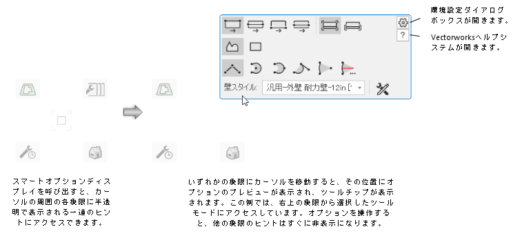 作業時にスマートオプションディスプレイを呼び出すオプションは複数あります。