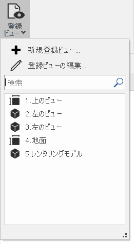 表示バーの登録ビューメニューからは登録ビューの主な機能にすばやくアクセスできますが、以下の関連トピックで説明するように、他の方法でビューを作成、編集、再定義、表示、およびスクロールすることもできます。