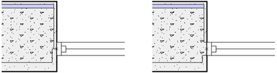 シンボルに壁との取り合いコンポーネントが含まれない場合(左側)、挿入物に回り込みに設定しているコンポーネントはシンボルの挿入点に回り込みます。 壁との取り合いコンポーネントが含まれる場合(右側)、挿入物に回り込みに設定しているコンポーネントは、壁との取り合いコンポーネントの最も近い面に回り込みます。