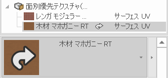 テクスチャにデカールが適用されている場合は、そのエンティティのメインのテクスチャブラウザ項目の下にデカールリソースがオフセットされて表示されます。デカールのリスト項目が選択されている時には、デカールのサムネイルが表示されます。