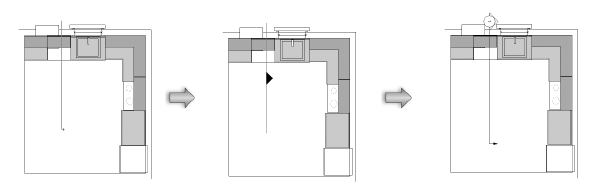 図面をクリックし、マウスをドラッグしてマーカー線の描画を開始します。再度クリックして線の終端を設定します。次に、線のどちら側を表示する(残す)かをクリックして指定します。これは黒い矢印で示されます。ダブルクリックして線の描画を終了します。