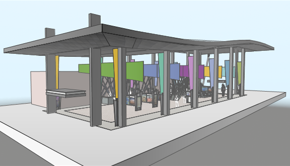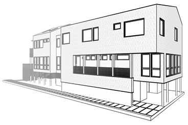 シェイドまたは隠線消去レンダリングモードでレンダリングされた室内展開図ビューポートを含む、シートレイヤビューポートおよび断面ビューポートでは、視点から近いまたは遠いオブジェクトを透視投影および垂直投影ビューでよりリアルに表示する、奥行きの表現オプションを使用できます。シェイドビューポートに奥行きを追加するには、距離が遠くなるほどオブジェクトの面の色を薄くするグラデーションを適用して定義します。隠線消去ビューポートに奥行きを追加するには、距離と共に線のトーン値や太さが減少するように設定します。