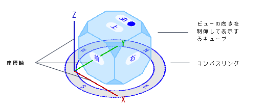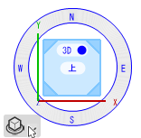 が表示されます。必要に応じてキューブ上のカーソルの位置を再調整したり、キューブの面や角をクリックしたりして適切な標準ビューに変更し、視点の移動を開始します。