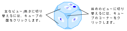 現在の標準ビューとは正反対のビューに変更するには、現在のビューの面または角をクリックします。