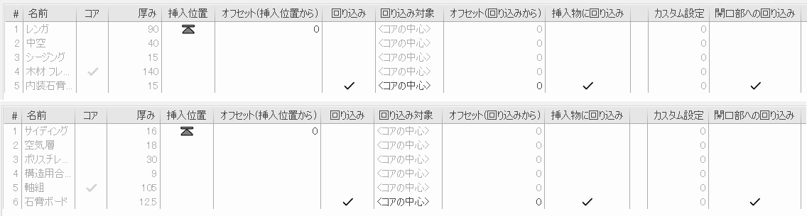 異なる種類の壁は、壁との取り合いが同じ名前であっても、個々の壁に適した異なる設定を持つ場合があります。これは、たとえばWindowという名前の壁との取り合いを使用するように設定された窓とある壁との相互作用は、定義が異なるWindowという壁との取り合いを持つ壁との相互作用とは異なるということです。