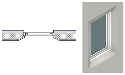 上で定義された構成要素の回り込みは、2つの異なる壁の、Windowという壁との取り合いの一部です。Windowという壁との取り合いを使用するように設定された挿入物は、挿入時および挿入後に、これらどちらかの壁の壁との取り合いおよび適切な設定と自動的に照合が一致します。